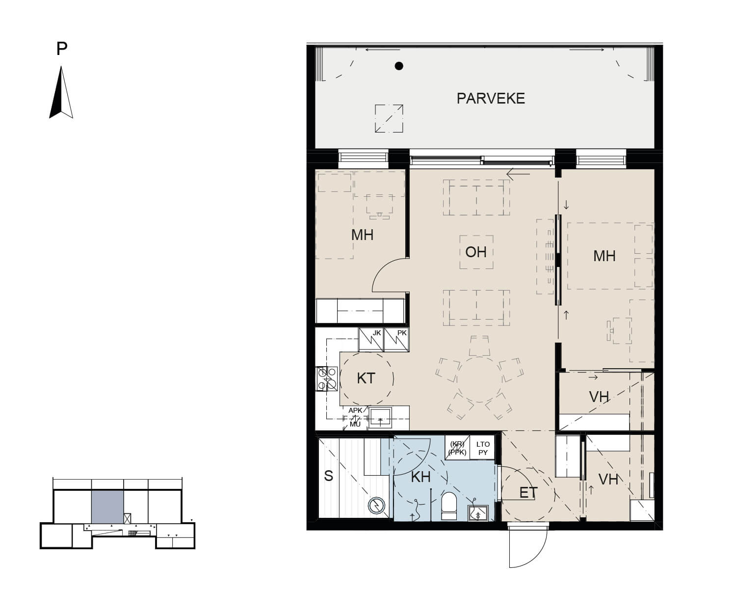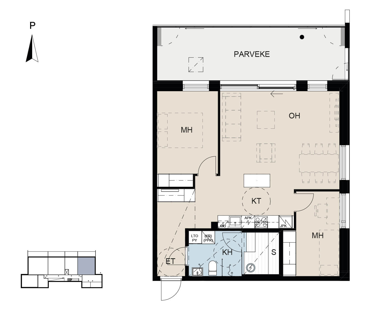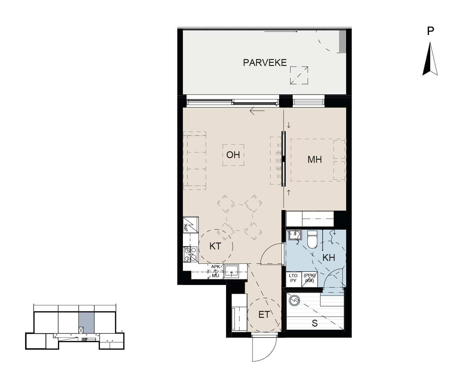 A26  |  5. kerros  |  2H+KT+S  |  58,5 m²