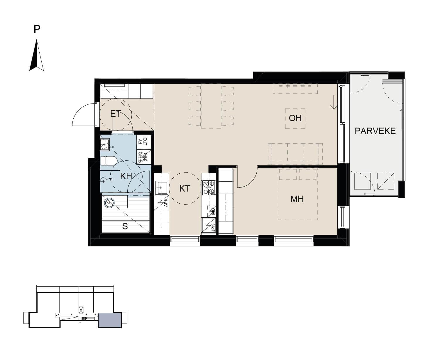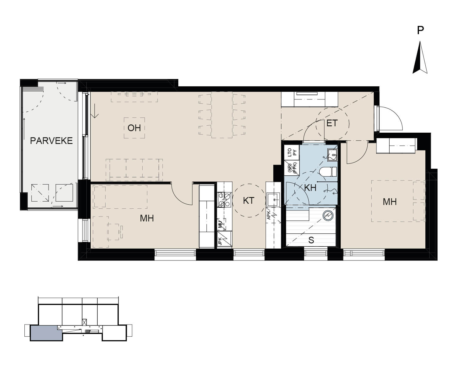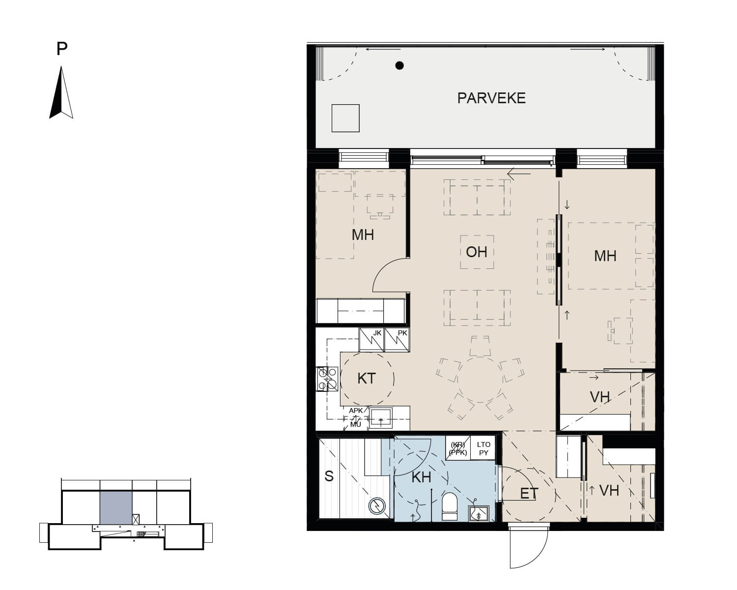 A26  |  5. kerros  |  2H+KT+S  |  58,5 m²